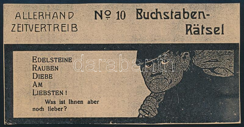 Leírás: No. 10 Buchstaben-Rätsel német nyelvű számolócédula, 12x6 cm