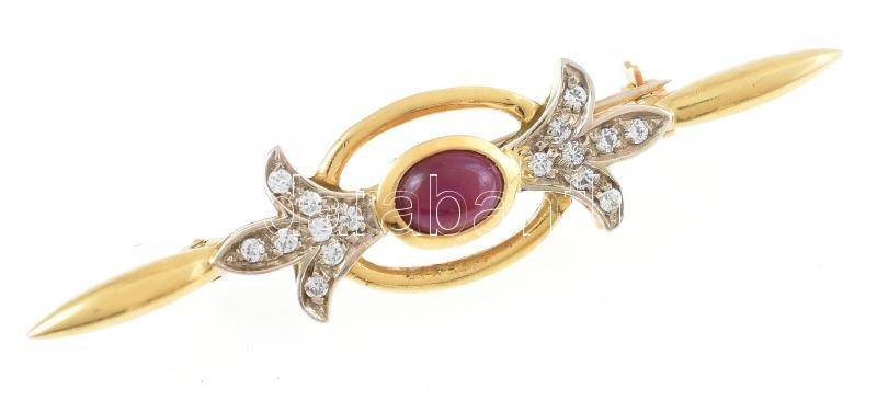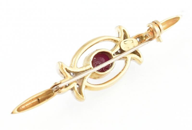 Leírás: 14K arany (Au) bross gyémánttal és rubinnal, jelzett 6,7 g