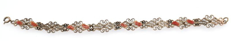Leírás: Ezüst (Ag) filigrán karkötő, jelzett, h: 18,5cm, bruttó: 8,32g