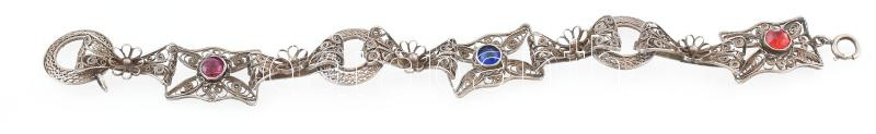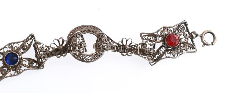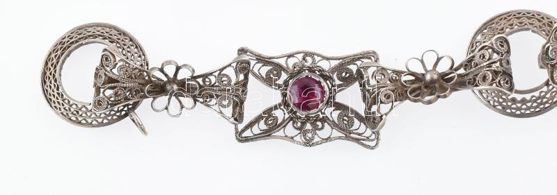 Leírás: Ezüst (Ag) filigrán, köves karkötő, h: 19 cm, bruttó: 13,3g, jelzett.