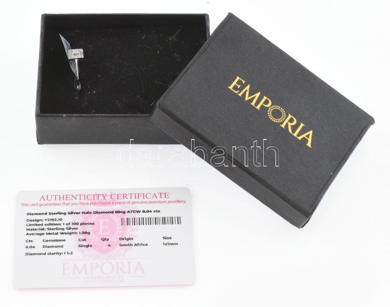 Ezüst (Ag) gyűrű 0,04ct brillel ékítve, bruttó: 1,98 g , m: 63. Tanúsí... https://www.darabanth.com/hu/429-Gyorsarveres/429.0/Nemesfem-disztargyak-ekszerek-dragakovek/Nemesfem-disztargyak-ekszerek-dragakovek~1000028/Ezust-Ag-gyuru-0-04ct-brillel-ekitve-brutto-1-98-g-m-63-Tanusitvannyal~II2725787