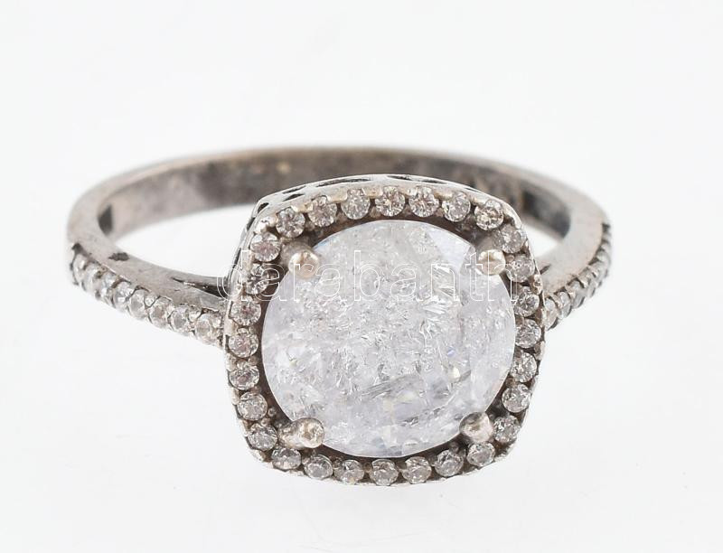 Leírás: Ezüst(Ag) gyűrű fehér kővel, jelzett, méret: 55, bruttó: 3,6 g