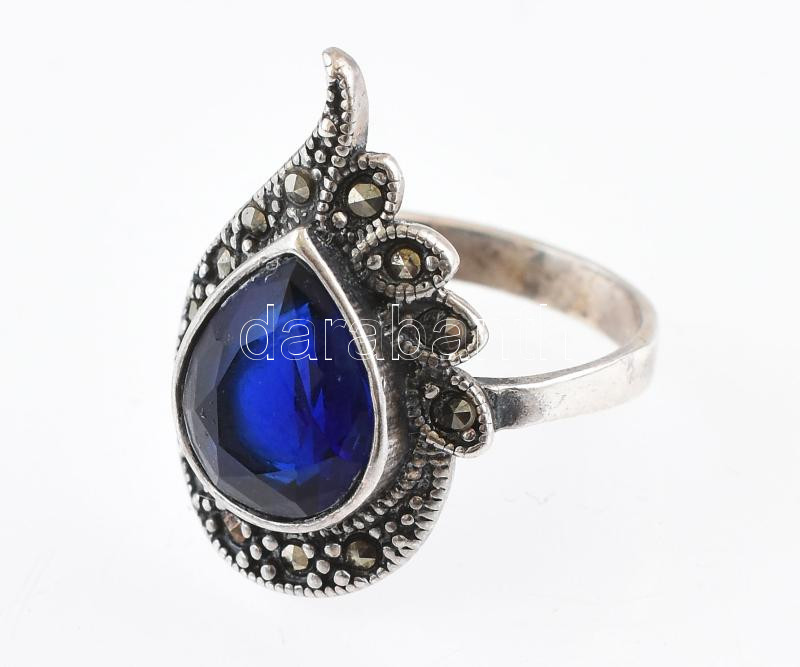 Leírás: Ezüst(Ag) gyűrű kék kővel, jelzés nélkül, méret: 56, bruttó: 4,7 g