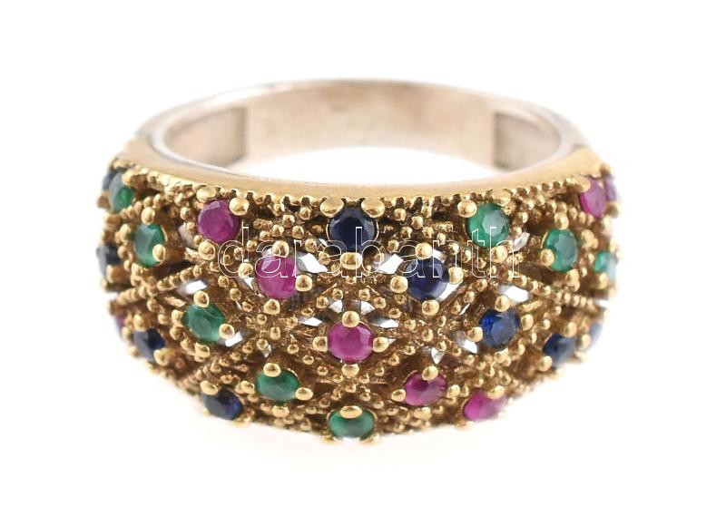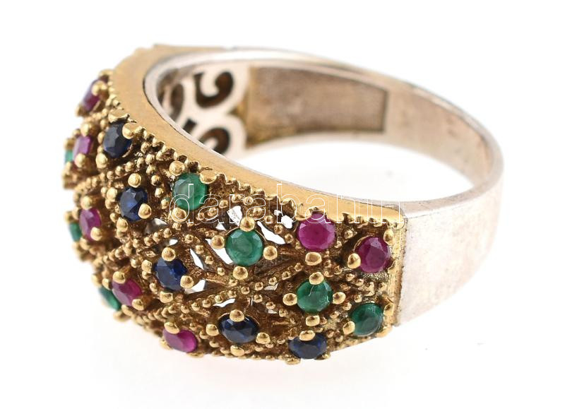 Leírás: Ezüst(Ag) gyűrű színes kövekkel, jelzett, méret: 57, bruttó: 6 g