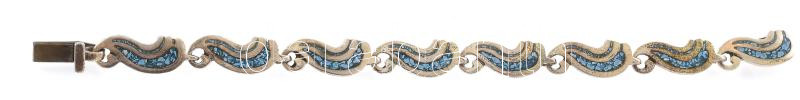 Leírás: Ezüst(Ag) hullámos karkötő fém csattal, jelzett, h: 16 cm, bruttó: 15,8 g
