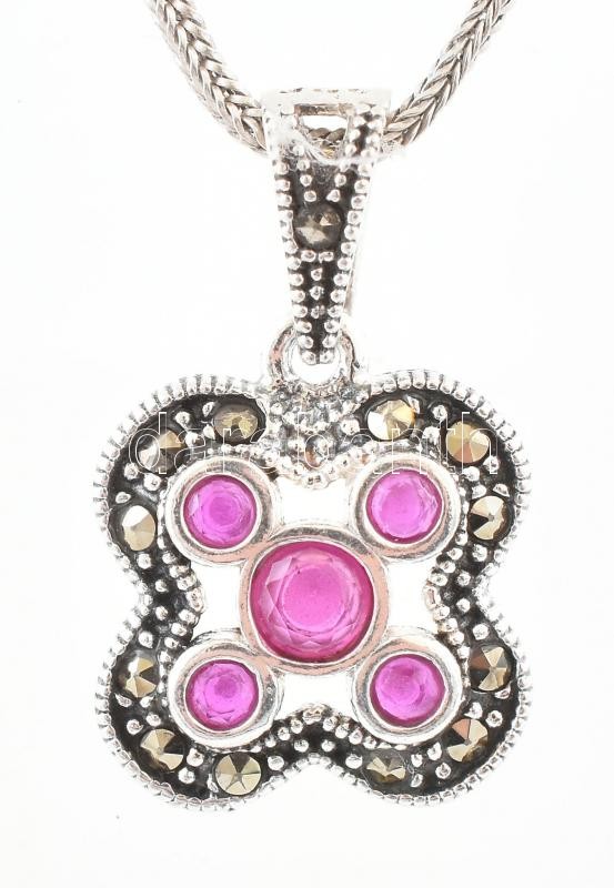 Leírás: Ezüst(Ag) nyaklánc szintetikus rubinnal díszített medállal, jelzett, h: 50 cm, bruttó: 7,1 g