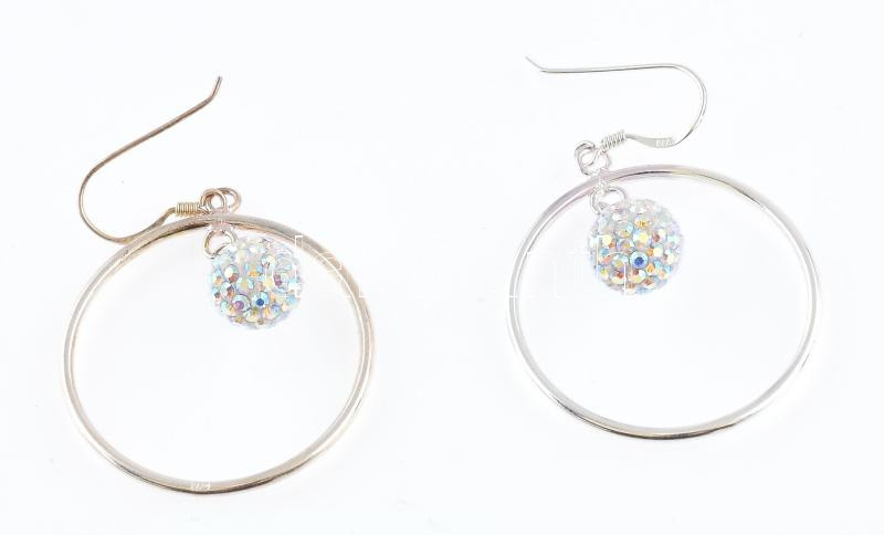 Leírás: Ezüst(Ag) shamballa gyönggyel díszített fülbevalópár, jelzett, d: 2,5 cm, bruttó: 5,3 g