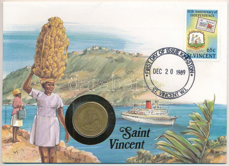 Kelet-Karibi Államok / Saint Vincent 1981. 1$ Al-bronz felbélyegzett borítékban, bélyegzéssel, német nyelvű leírással T:2 patina