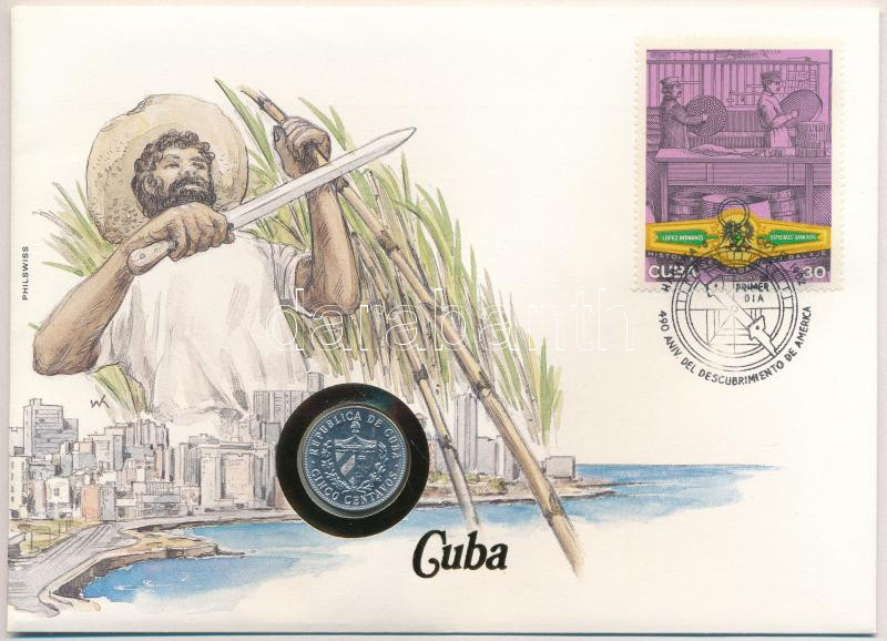 Cuba 1968. 5 Centavos Al in envelope with stamp and cancellation, with German description C:UNC