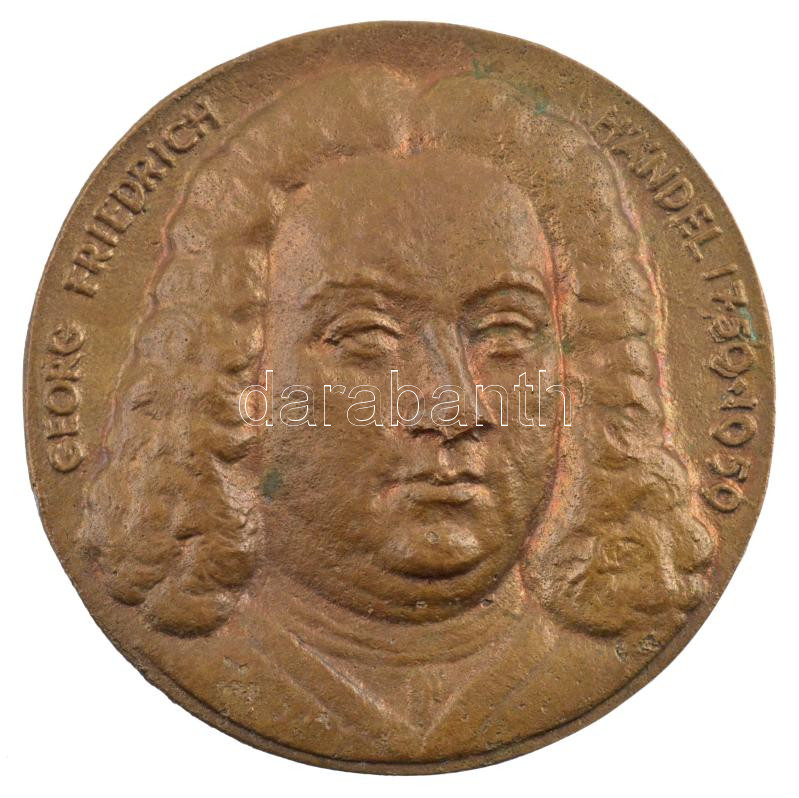 NSZK 1959 "Georg Friedrich Händel 1759-1959- Handel Festspiele im Halle Saale" bronz emlékérem jelzett d:78 mm T: 2 / 1959 GFR"Georg Friedrich Händel 1759-1959- Handel Festspiele im Halle Saale" bronze commemorative coin d: 78 mm, C: EF