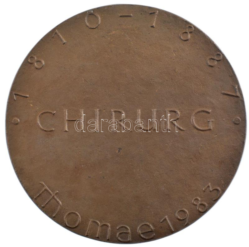 Leírás: Német Szövetségi Köztársaság(?) 1983. "Bernhard von Langenbeck / 1810-1887 Sebész" kétoldalas, öntött bronz plakett. Szign.: Thomae (98mm) T:1-