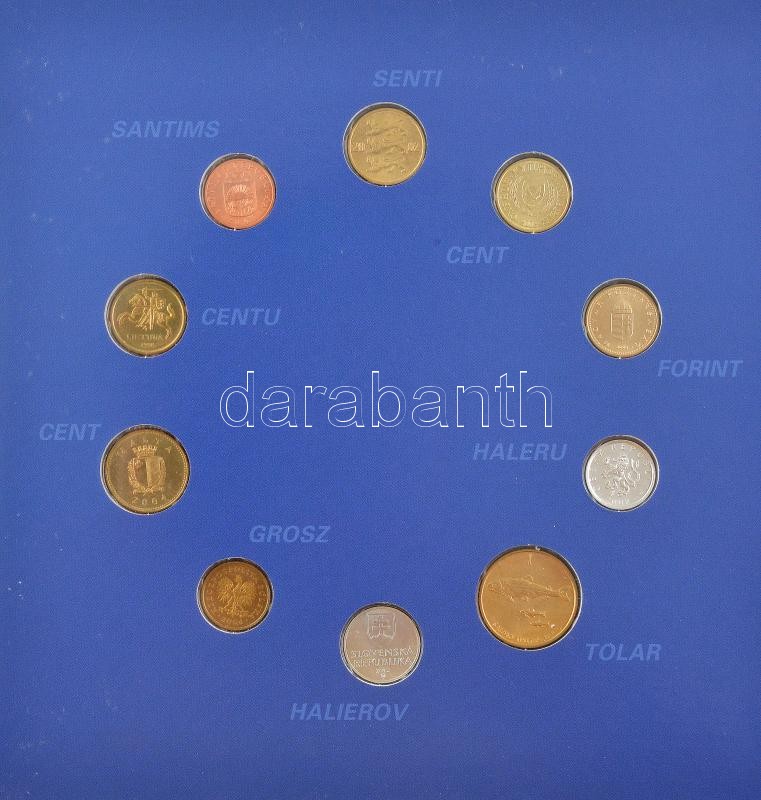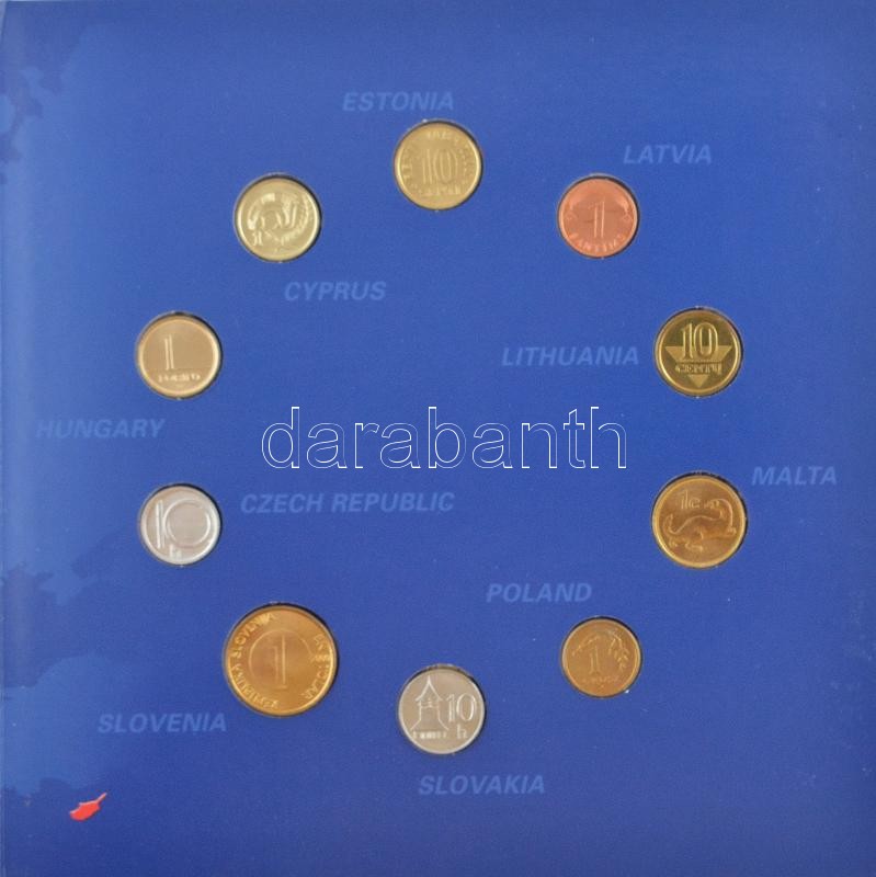 1998-2004. "Európai Unió tagjelölt országainak pénzei" (10xklf) érme dísztokban a következő országokból: Ciprus, Csehország, Észtország, Magyarország, Lettország, Litvánia, Málta, Lengyelország, Szlovákia, Szlovénia T:1 1998-2004. "The Circulation Coins of the EU Candidate Countries" (10xdiff) coins in original case from the following countries: Cyprus, Czech Republic, Estonia, Hungary, Latvia, Lithuania, Malta, Poland, Slovakia, Slovenia C:UNC
