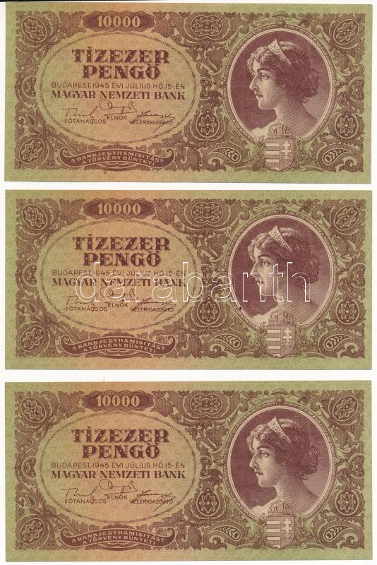 1946. 10.000P (3x) sorszámkövetők "L 114 075874 - L 114 075876&qu... https://www.darabanth.com/hu/429-Gyorsarveres/429.0/Numizmatika/Magyar-bankjegyek~2000009/1946-10000P-3x-sorszamkovetok-L-114-075874-L-114-075876-TI-Adamo-P23~II2756731