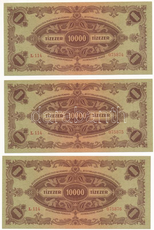 Leírás: 1946. 10.000P (3x) sorszámkövetők "L 114 075874 - L 114 075876" T:I- Adamo P23