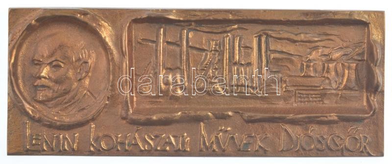 ~1975. "Lenin Kohászati Művek Diósgyőr" öntött bronz plakett eredeti dísztokban (59x148mm) T:1 / Hungary ~1975. "Lenin Metallurgical Works Diósgyőr" cast bronze plaque in original case (59x148mm) C:UNC