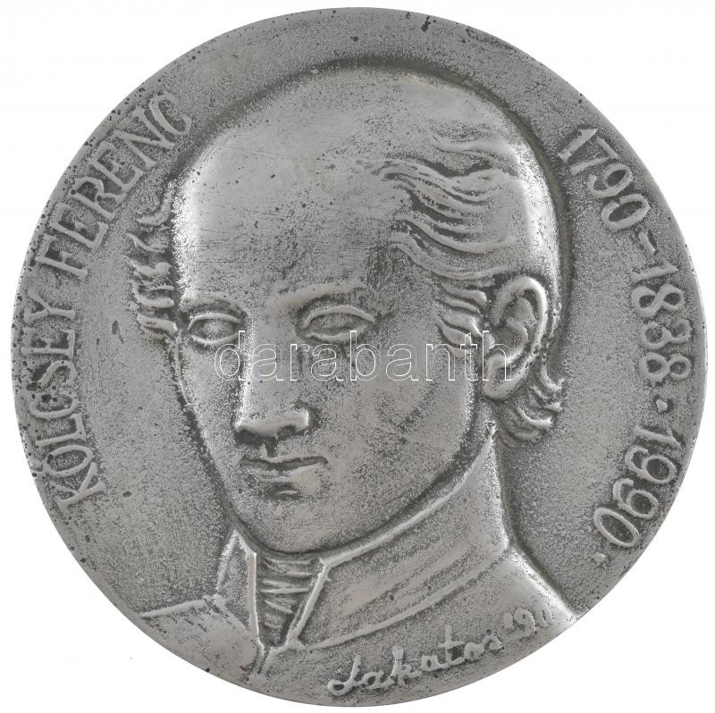 Leírás: E. Lakatos Aranka (1952-) 1990. "Kölcsey Ferenc 1790-1838-1990" egyoldalas, öntött fém plakett (143mm) T:2