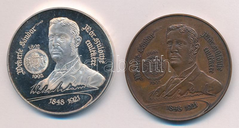 Leírás: Fritz Mihály (1947-) 1992. "Wekerle Sándor, Mór szülöttje emlékére / Gyűjtők Egyesülete - Mór" (2xklf) bronz és fém emlékérem pár T:1-