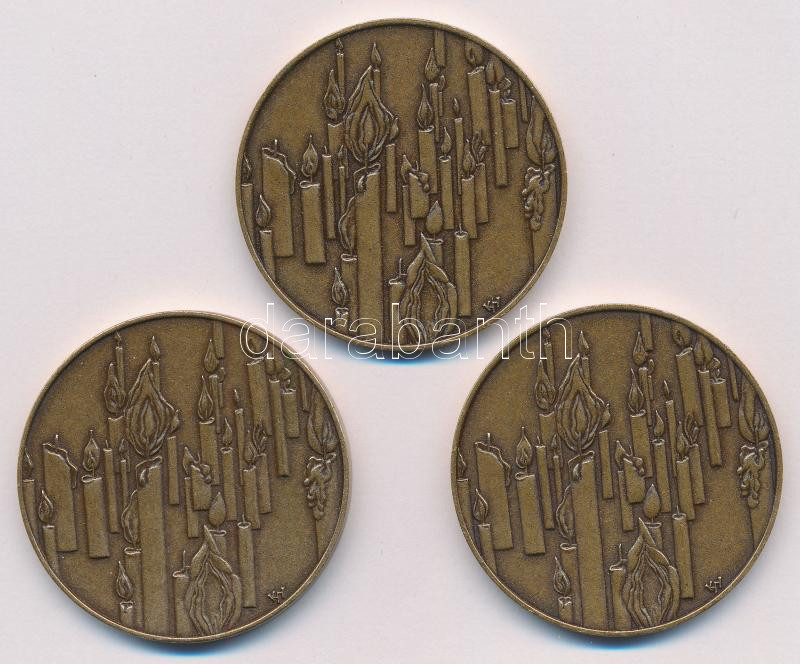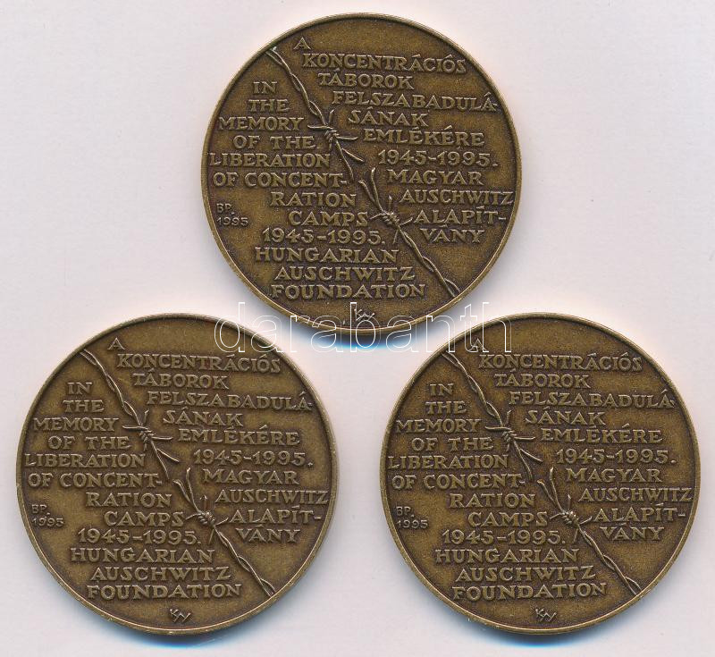 Kiss György (1943-2016) 1995. "A koncentrációs táborok felszabadulásának emlékére" kétoldalas bronz emlékérem (3x) mindegyik kapszulában (42,5mm) T:1,1-