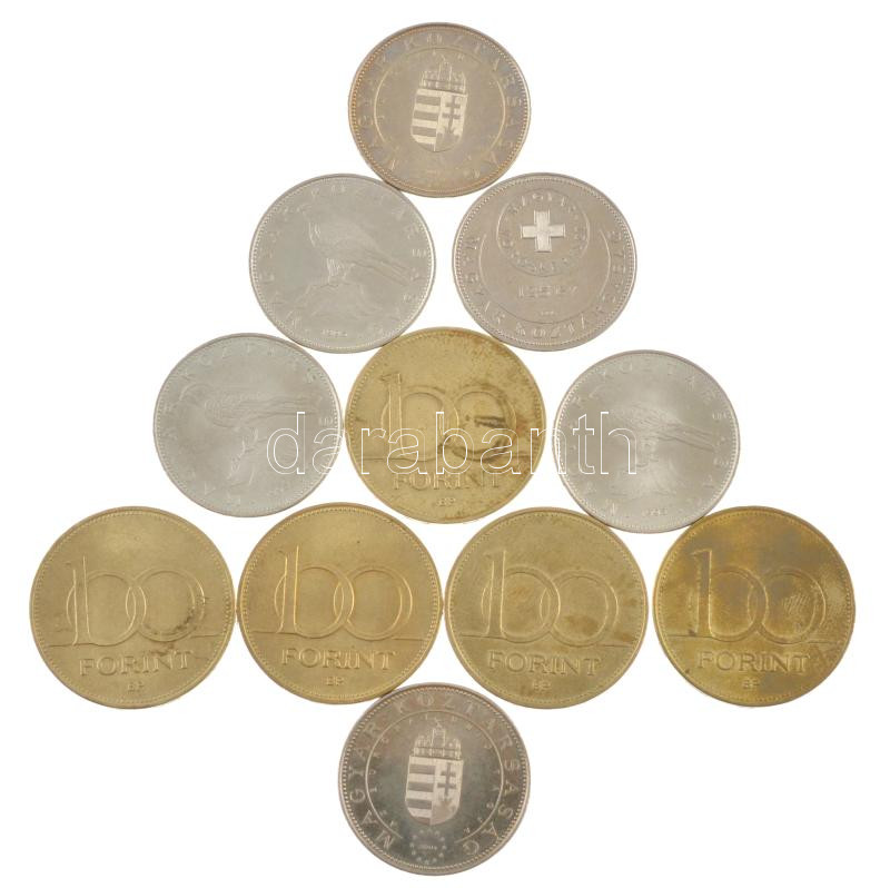 1995. 50Ft Cu-Ni (3x) + 2004. 50Ft Cu-Ni "A Magyar Köztársaság az Európai Unió tagja" (2x) + 2006. 50Ft Cu-Ni "125 éves a Magyar Vöröskereszt" + 1994. 100Ft Cu-Ni-Zn (3x) + 1995. 100Ft Cu-Ni-Zn + 1996. 100Ft Cu-Ni-Zn T:2 patina