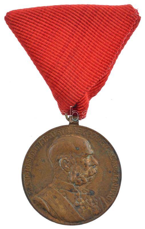 Hungary 1898. "Commemorative Jubilee Medal for the Armed Forces" bronze decoration on modern ribbon C:XF,VF patina