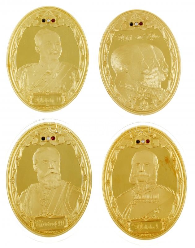 DN 4 darabos aranyozott, kristályberakásos emlékérem tétel "Die Kaiser des Deutscher Reichs" sorozat, az érmeken a Német császárság uralkodói: III. Frigyes, I. Vilmos, II. Vilmos (85x60mm) T:PP
