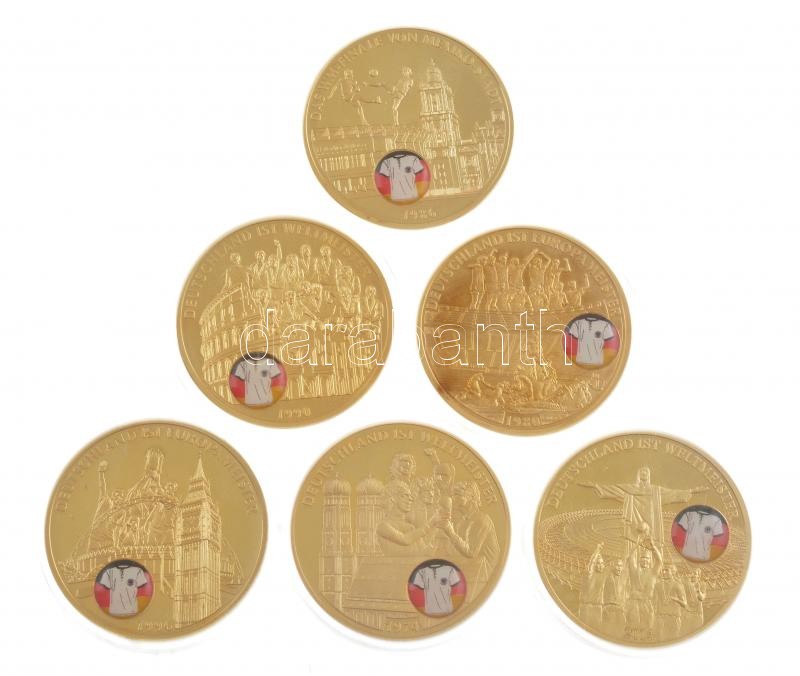 Leírás: DN "Die Grössten Erfolge - Der Deutschen Elf" sorozat 6 darab, mind különféle aranyozott, zománcbetétes emlékérme (50mm) T:PP