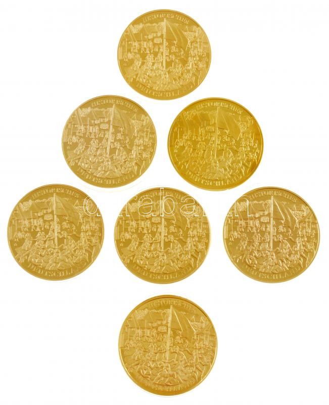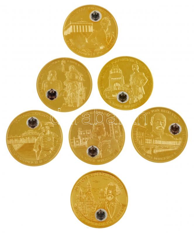 DN "Historisches Deutschland (Történelmi Németország)" sorozat 7db különféle, uralkodókat ábrázoló aranyozott emlékérem sorozat, közte: I. Lajos és II. Lajos bajor uralkodók, II. (Nagy) Frigyes, I. Vilmos, II. Vilmos és Bismarck kancellár