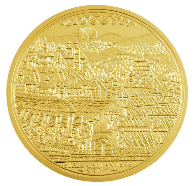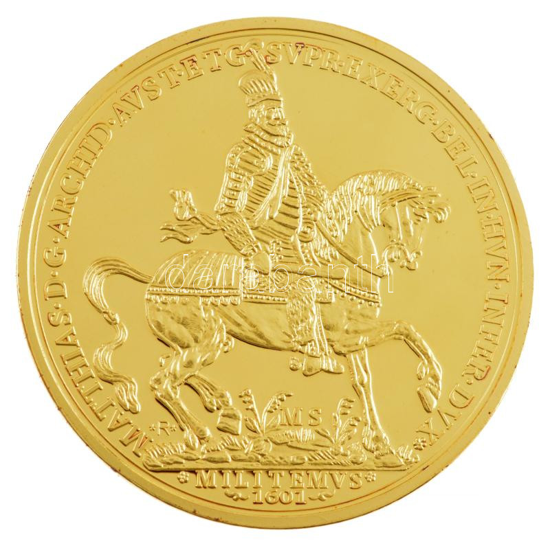 Leírás: DN "Magyar Aranyóriások - II. Mátyás 16 dukát, Esztergom ostroma, 1595/1601" aranyozott Cu utánveret tanúsítvánnyal (46mm) T:PP