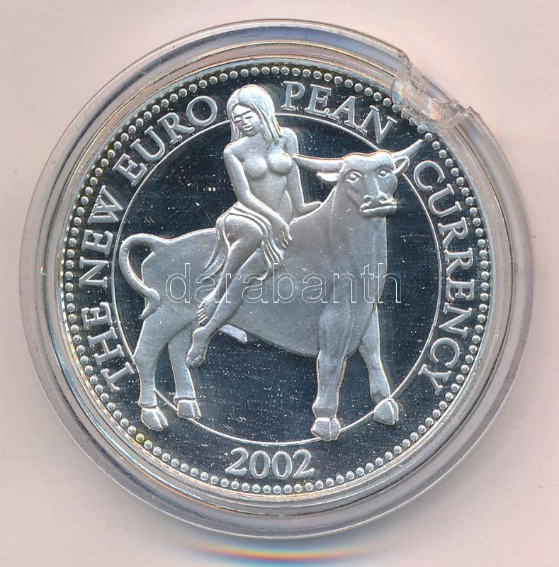 Leírás: Görögország DN "Európai valuták - Görögország" ezüstözött Cu-Ni emlékérem, benne 2003. 1c acél aranyozva (40mm) T:1 patina