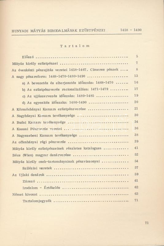Leírás: Pohl Artúr: Hunyadi Mátyás birodalmának ezüstpénzei 1458-1490. Magyar Éremgyűjtők Egyesülete, Budapest, 1972. Használt, szép állapotban.
