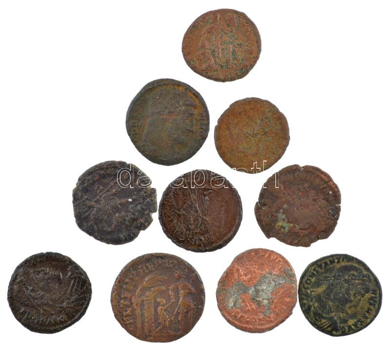 Leírás: Római Birodalom 10db-os bronz érmetétel a III-IV. századból T:2-,3 Roman Empire 10pcs bronze coin lot from the 3rd-4th century C:VF,F