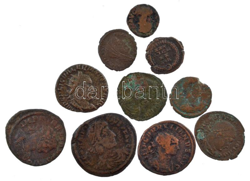 Leírás: Római Birodalom 10db-os bronz érmetétel a III-IV. századból T:2-,3 Roman Empire 10pcs bronze coin lot from the 3rd-4th century C:VF,F