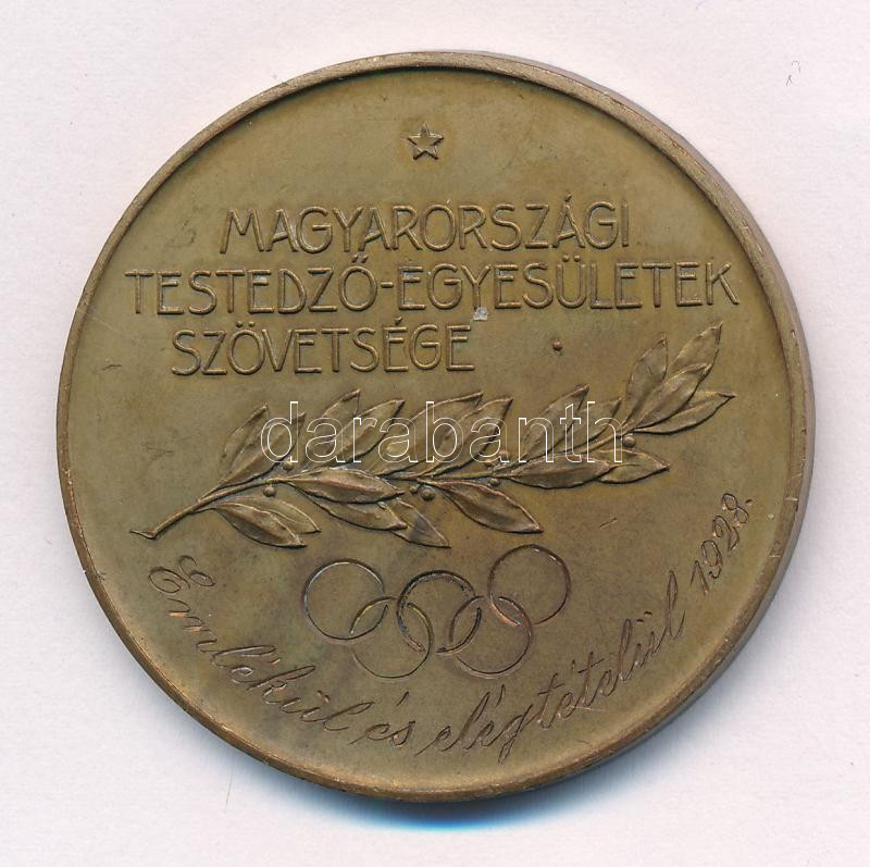 Damkó József (1872-1955) / Exner Károly (1850-1919) 1928. "Magyarországi Testedző-Egyesületek Szövetsége" kétoldalas bronz díjérem "Emlékül és elégtételül 1928" szöveg, valamint egy olimpiai ötkarikás gravírozással (45mm) T:1- kis patina