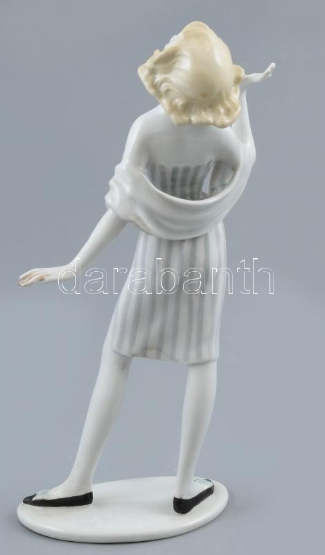 Leírás: Unterweissbach porcelán nő, kézzel festett, jelzett, sérült, m:24 cm (terv: Kurt Steiner)