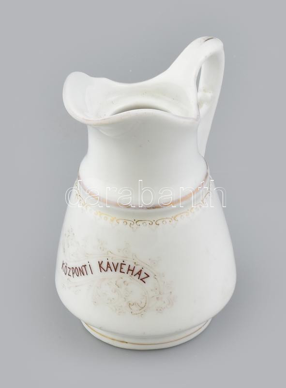 Leírás: cca 1900 Központi Kávéház porcelán tejkiöntő, jelzett, kopásnyomokkal, m: 12 cm