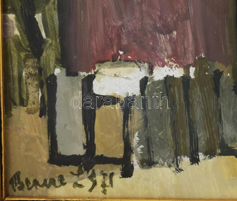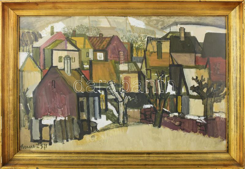 Leírás: Bencze László (1907-1992): Tél. Tempera, farost, jelezve balra lent. Hátoldalán Képcsarnok Vállalat címkéivel. Üvegezett, dekoratív fakeretben, 40×61 cm / tempera of fibre board, signed, framed