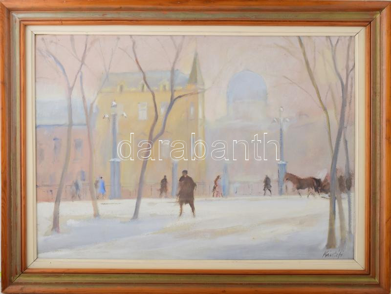 Kristófi János (1925-2014): Nagyvárad télen. Olaj, karton, jjl.: Kristófi. 50x70 cm. Fakeretben / János Kristófi (1925-2014): Wintertime in Oradea. Oil on board, signed lower right. 50x70 cm. Framed