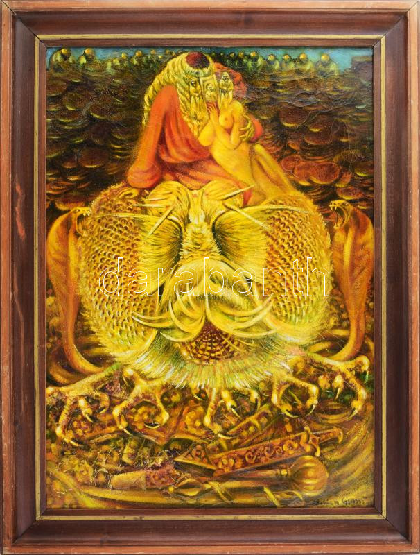 Rádóczy Gyarmathy Gábor (1943-): Tőke. Olaj, vászon. Jelezve jobbra le... https://www.darabanth.com/hu/43-Nagyaukcio/43.1/Festmenyek-es-grafikak/Kortars-festmenyek-es-grafikak~17607/Radoczy-Gyarmathy-Gabor-1943-Toke-Olaj-vaszon-Jelezve-jobbra-lent-Reprodukalva-Feledy~II3220354