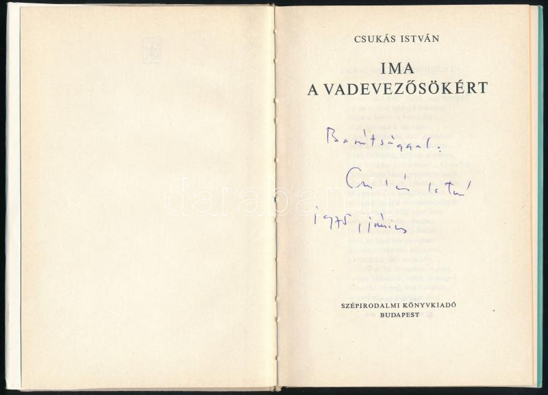 Csukás István: Ima a vadevezősökért. A szerző, Csukás István (1936-2020) író, költő által DEDIKÁLT példány. Bp., 1975., Szépirodalmi, 56+2 p. Első kiadás. Kiadói egészvászon-kötés, kiadói papír védőborítóban.