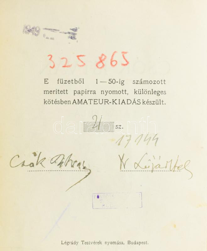 Bp., 1921-1923,Ernst-Múzeum,(Légrády-ny.) A borítókat nem kötötték be. Átkötött félvászon-kötés, kopott borítóval, a gerincen apró sérüléssel, régi állományi bélyegzésekkel és bejegyzésekkel.
