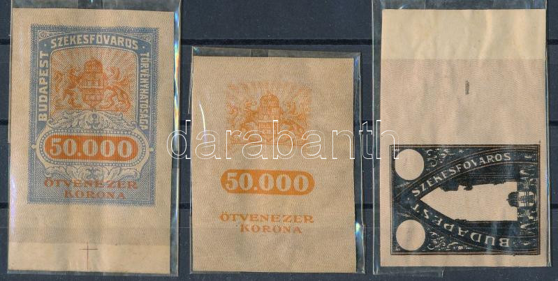 Leírás: 3 db Budapest székesfővárosi illetékbélyeg fázisnyomat