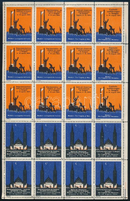 Leírás: 1934 Szegedi Szabadtéri Játékok, Madách - Az ember tragédiája francia levélzáró kisív / France label mini sheet
