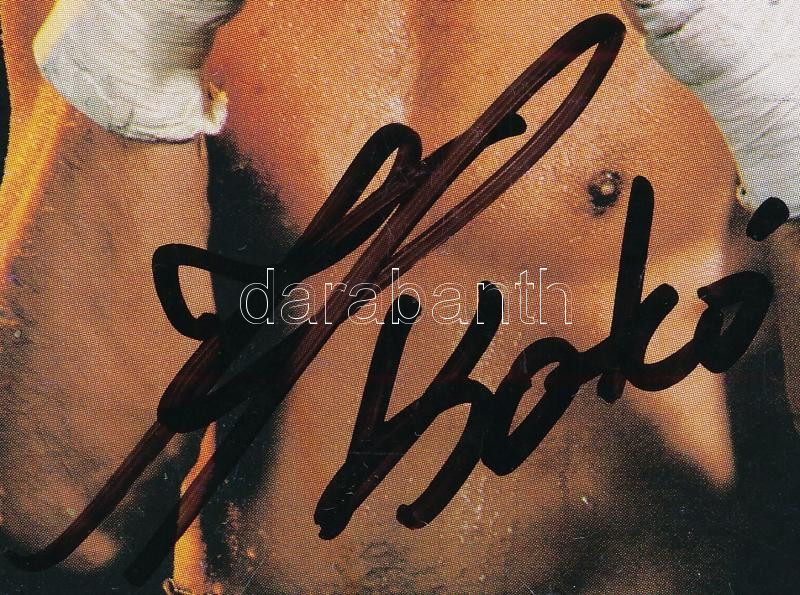 Leírás: Kovács Kokó István bokszoló aláírása az őt ábrázoló képeslapon