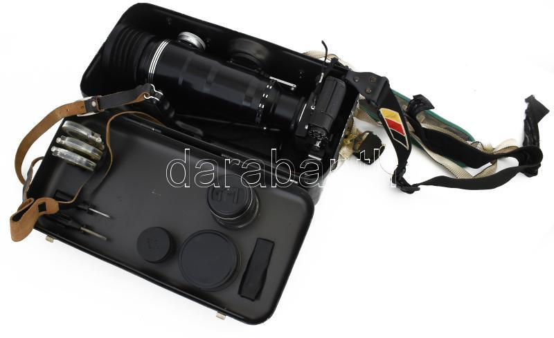 Leírás: Fotó puska készlet tartalék objektívvel, kompletten, dobozzal, tartalék helios 44 objektívvel, szűrőkkel, stb, jó állapotban / Photo Sniper Zenit-E Tair-3-PHS 300mm f:4,5 M-42mm full set.