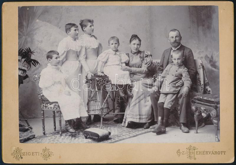 Leírás: cca 1910 Székesfehérvár, Szigeti fényképész fényirdájában készült, keményhátú, vintage fotó, a felirat szerint a Csányi családot ábrázolja, 15x21,5 cm
