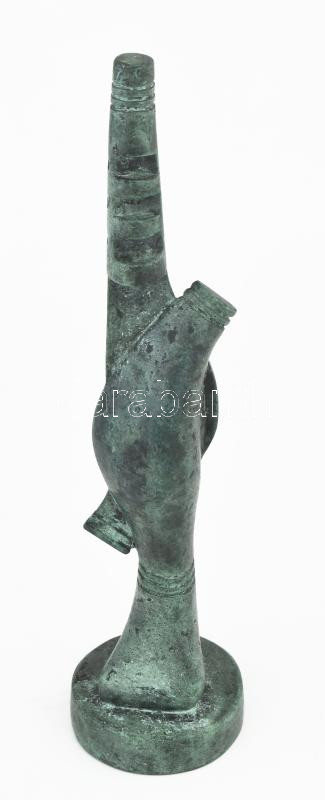 Leírás: Sztrákos László (1954): Sámánsíp, öntött, patinázott bronz. m: 32 cm, Jelezve: Sztrákos 1/1
