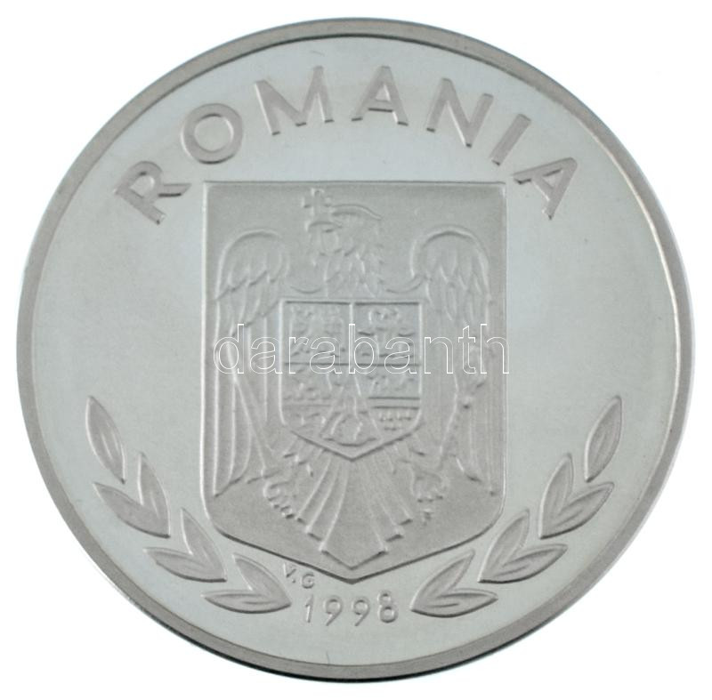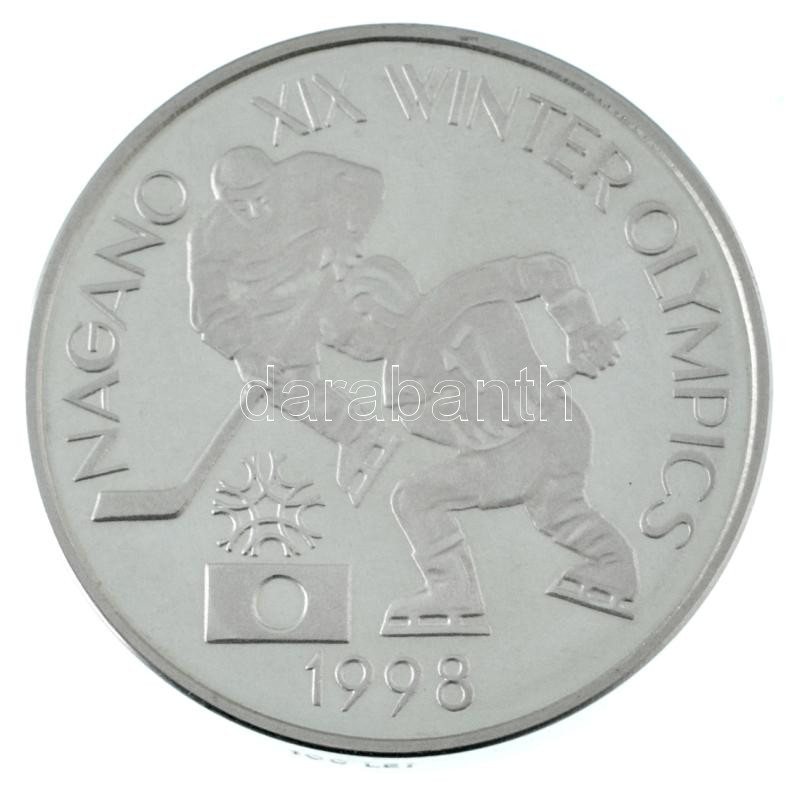Románia 1998. 100L Ag "XIX. Téli Olimpia, Nagano - Jégkorong" jelzetlen piedfort próbaveret kapszulában, névérték a peremen, csak 125db létezik belőle! (37mm/0.925/54g) T:PP / Romania 1998. 100 Lei Ag "19th Winter Olympics, Nagano - Ice hockey" unmarked piedfort trial strike in capsule, face value on the edge, only 125 pieces exist! (37mm/0.925/54g) C:PP Krause X#P26