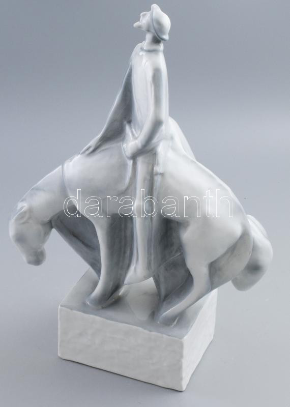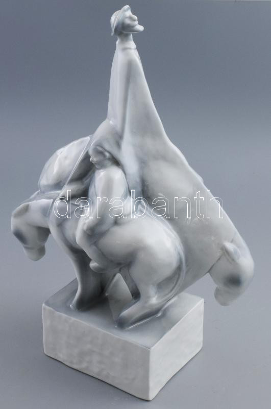 Zsolnay Don Quijote és Sancho Panza. Tervező: Olcsai Kiss Zoltán (1895-1981). Jelzett, m: 38,5 cm /// Zsolnay Don Quixote and Sancho Panza. Designer: Zoltán Olcsai Kiss (1895-1981). Signed, height: 38.5 cm.