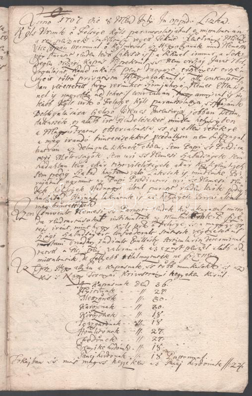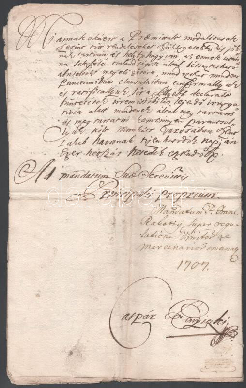 1707 II. Rákóczi Ferenc tokaji és Zemplén vármegyei szőlőkkel és a szőlőmunkások bérével kapcsolatos rendelete magyar nyelven. valamint a lefolytatott eljárás jegyzőkönye a hegybírók részvételével, majd ennek szentesítése Munkács városában, Beniczky Gáspár. (1674-1734) II. Rákóczi Ferenc magántitkára. aláírásával 8 magyarul beírt oldal. Rendkívüli ritkaság!