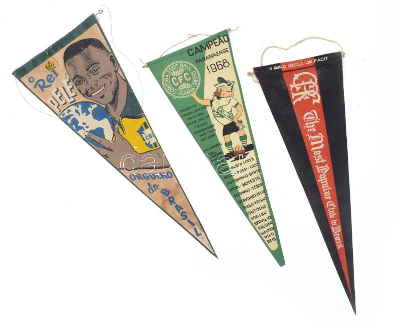 Leírás: 3 db régi dél-amerikai futball zászló, vegyes állapotban, 45×19 cm